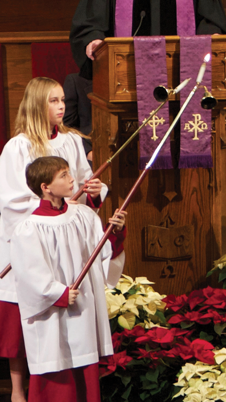 Acolytes bring God’s light into the sanctuary each Sunday morning during program year at the 10 AM service to begin worship.This wonderful and fun ministry allows your child(ren) to serve in the church. All training takes place in about an hour; the only other time commitment is arriving 15 minutes early before service on the Sundays your child(ren) participates.