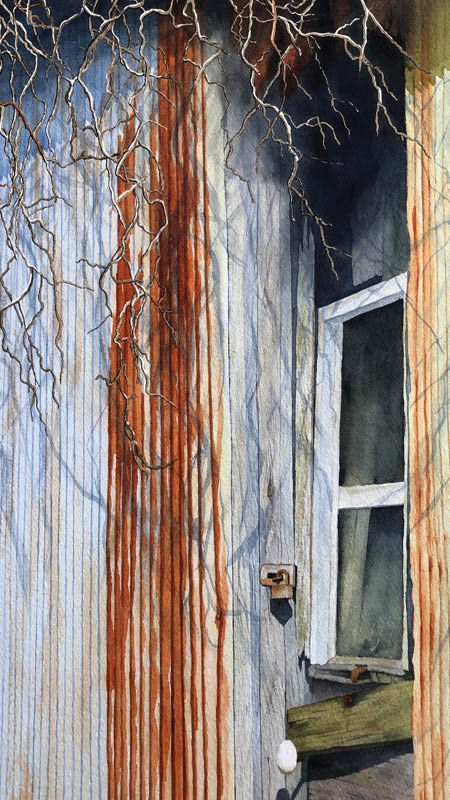 A streak of rust on an old, decaying metal shed. A ghost sign on the side of a corner bar. A dandelion growing out of the rot of an old garage door. Signs of the past labors and remnants of lost stories. Sprinkle in treasured memories from our life and travels and you have the things that interest me and spark my creativity. I choose to capture these memories and stories in my realistic watercolors. A bit “radical” as watercolor isn’t usually thought of as a medium for realism, but I love the challenge and the rewards of this interesting medium.